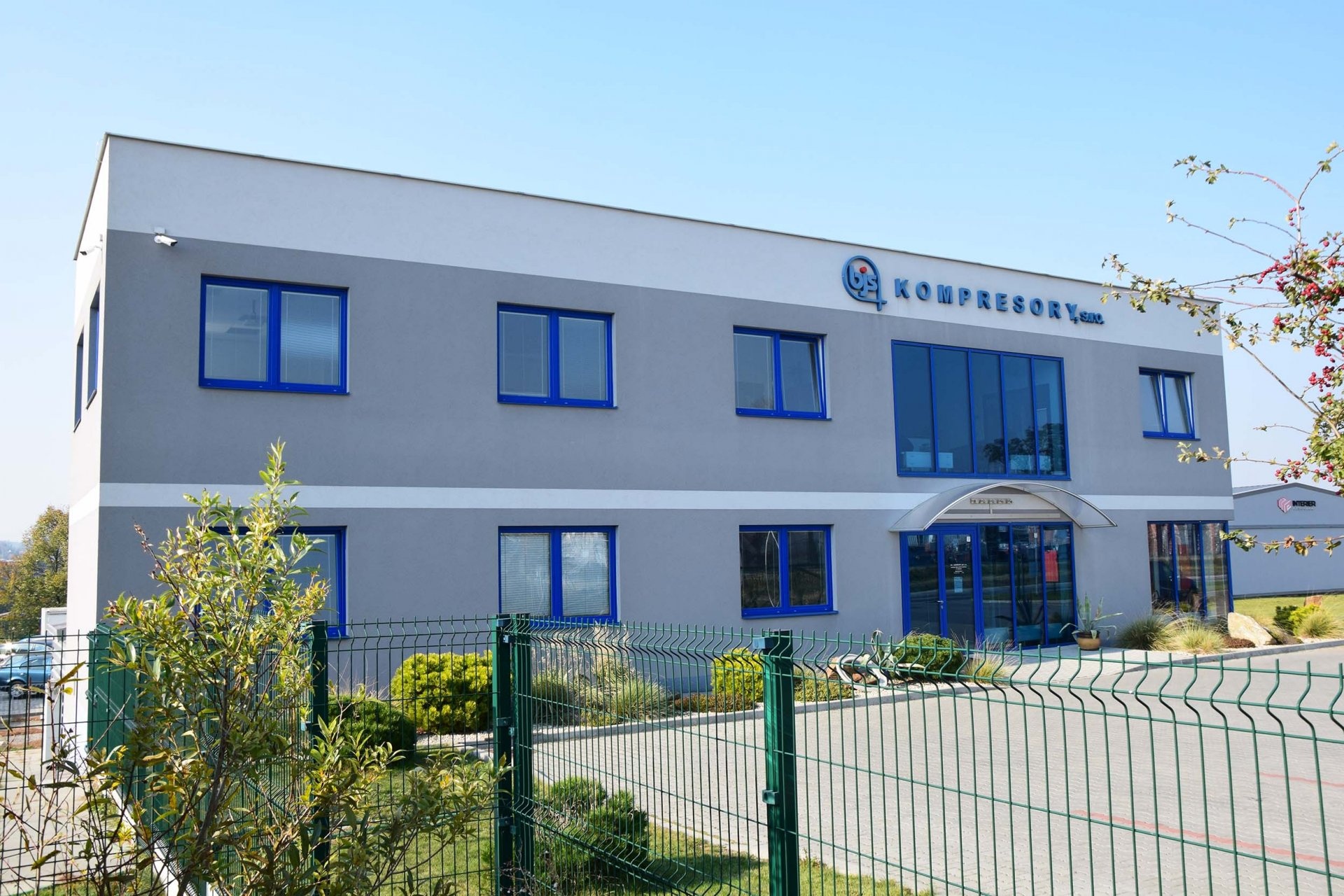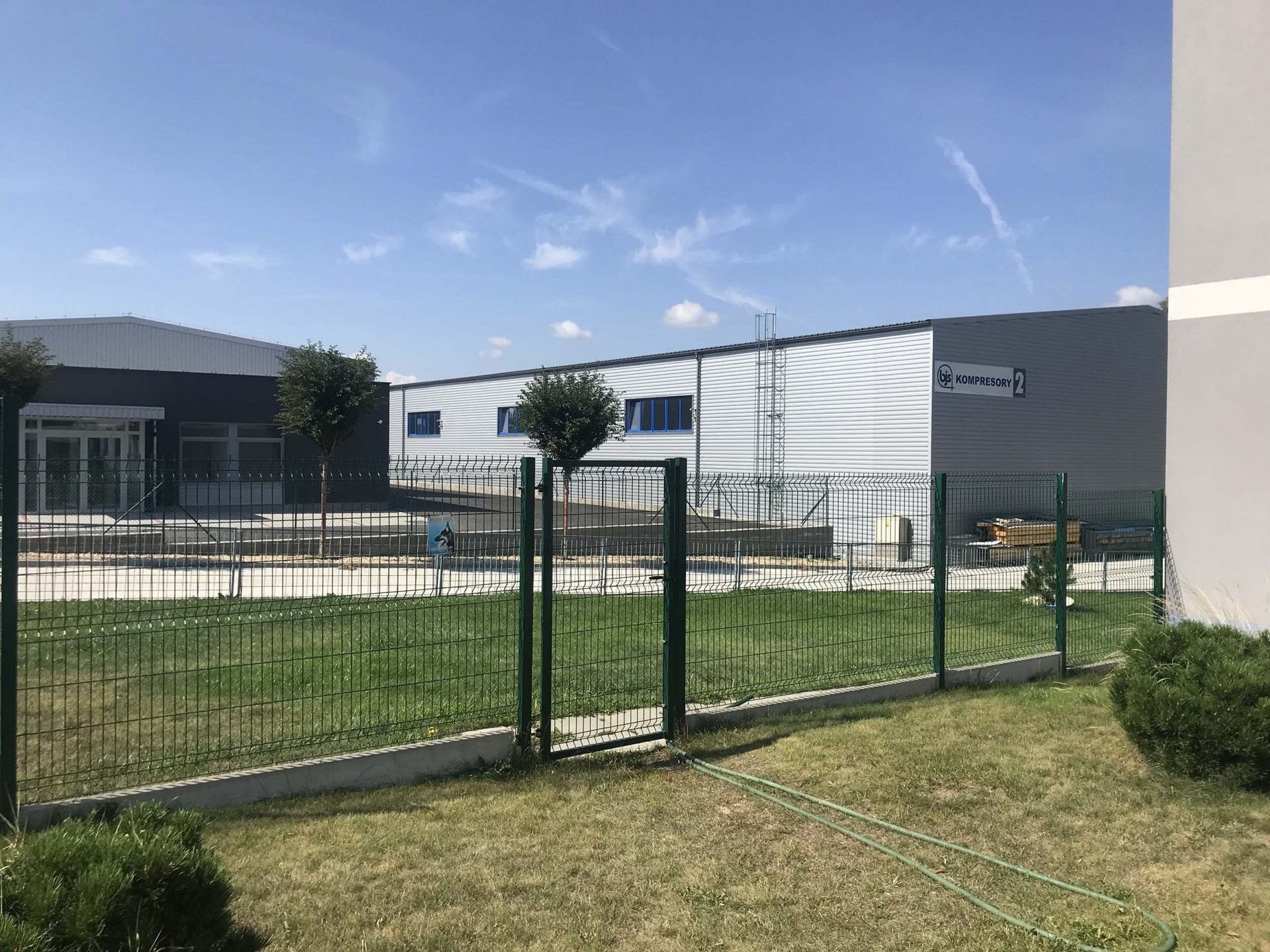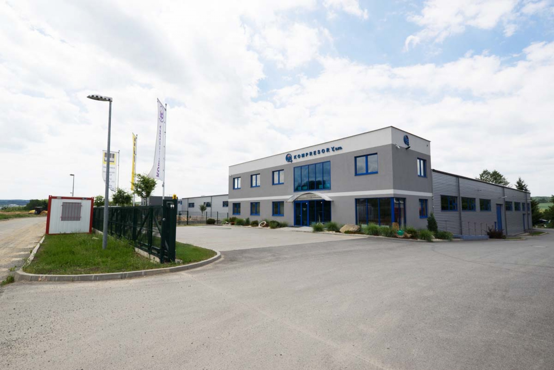 V letech 2016-2018 jsme vybudovali nový areál firmy o rozloze 6000m2, který se skládá z dvoupodlažní administrativní budovy, haly o rozloze 1000m2 pro opravy, servisy a zkoušení technologie a skladu o rozloze 1250m2 pro skladování ND a použitých kompresorů, sušiček a dalšího zařízení určeného k zapůjčení či prodeji.